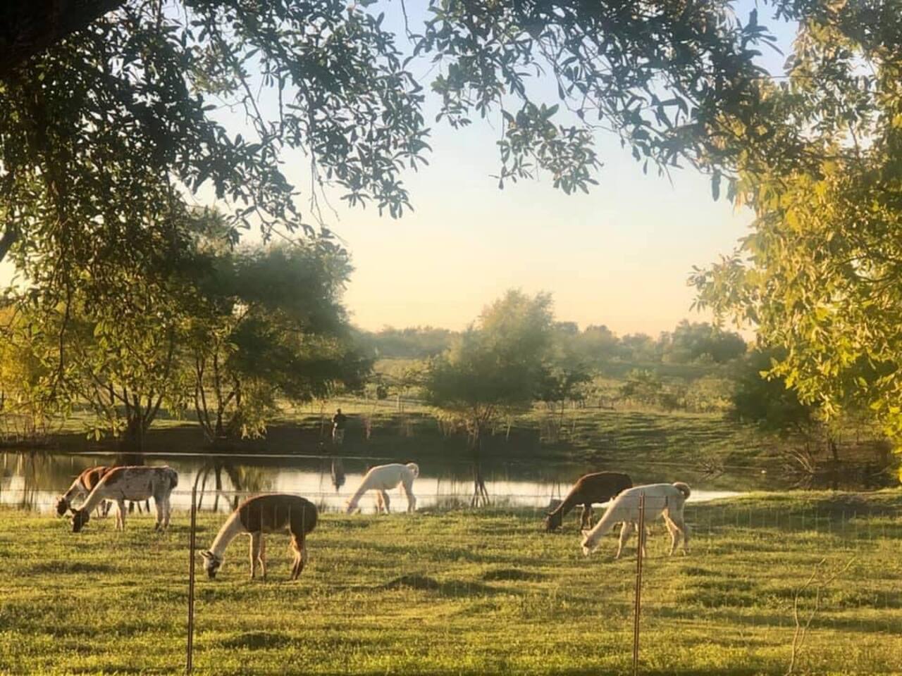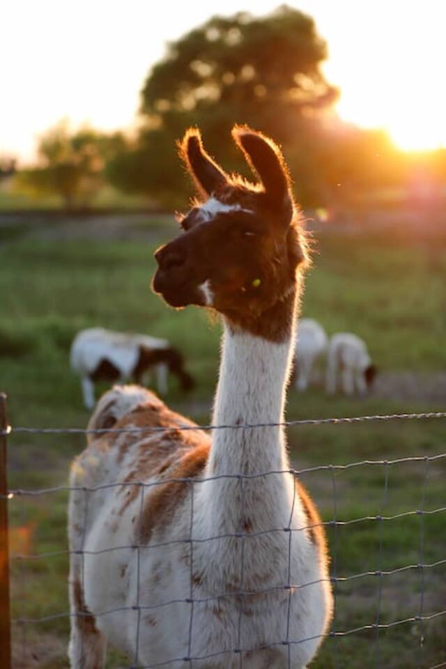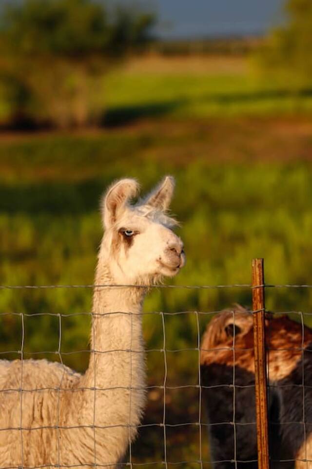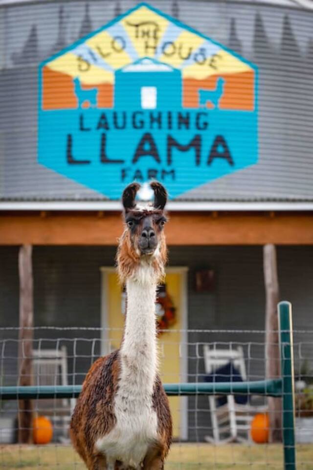This is a working farm with llamas, sheep, goats and cows occasionally. No matter what they say, please do not let them out of their designated areas into the fenced yard of The Silo House. They'd love to sit on The Silo House porch and have a beer with you if they could. Our animals are fed a special diet. We will provide you with some llama feed and when you arrive, there will be instructions to how they are trained and fed so that you can feed the llamas if you like. Please do not take any feed past the gate at the Silo House. They are trained to know if you are in the pasture, there is no food involved. Lil D, the brown goat, loves to hang out with you when you fish. He also loves fishing tackle, so please close all tackle boxes and watch your poles, lures and hooks. We feed and put the animals up at night (depending on the weather and the season) at the barn and they know the routine about sundown and the routine at sun up. Every day is a new adventure at Laughing Llama Farm.
