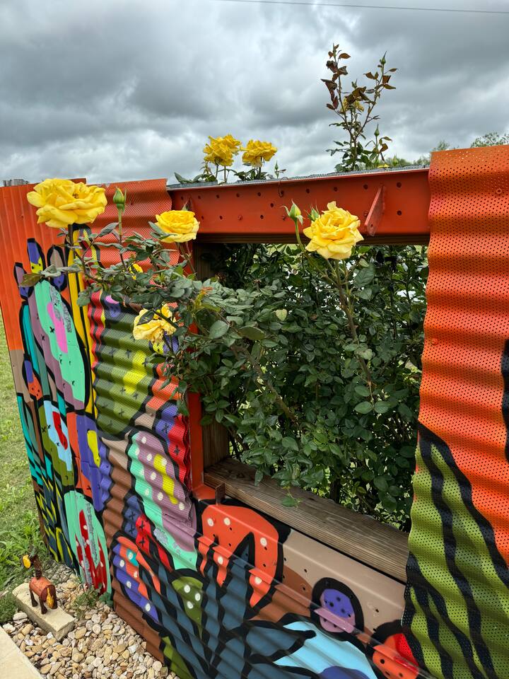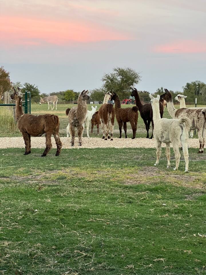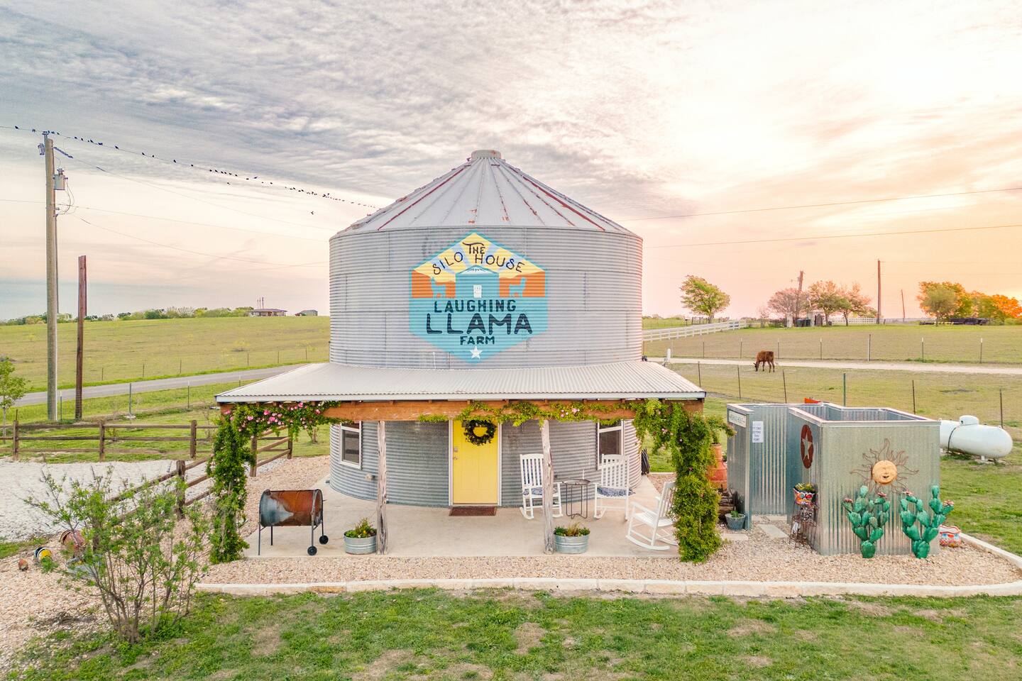 Enjoy The Silo House At Laughing Llama farm, secluded and private, conveniently located within minutes to everything Waco, Temple and Belton have to offer. Extras Silo House S’mores, Mimosas, Flower Arrangements on arrival, Charcuterie Packages, our highly rated Laughing Llama Farm Experience and special occasion sugar cookie packages are available.