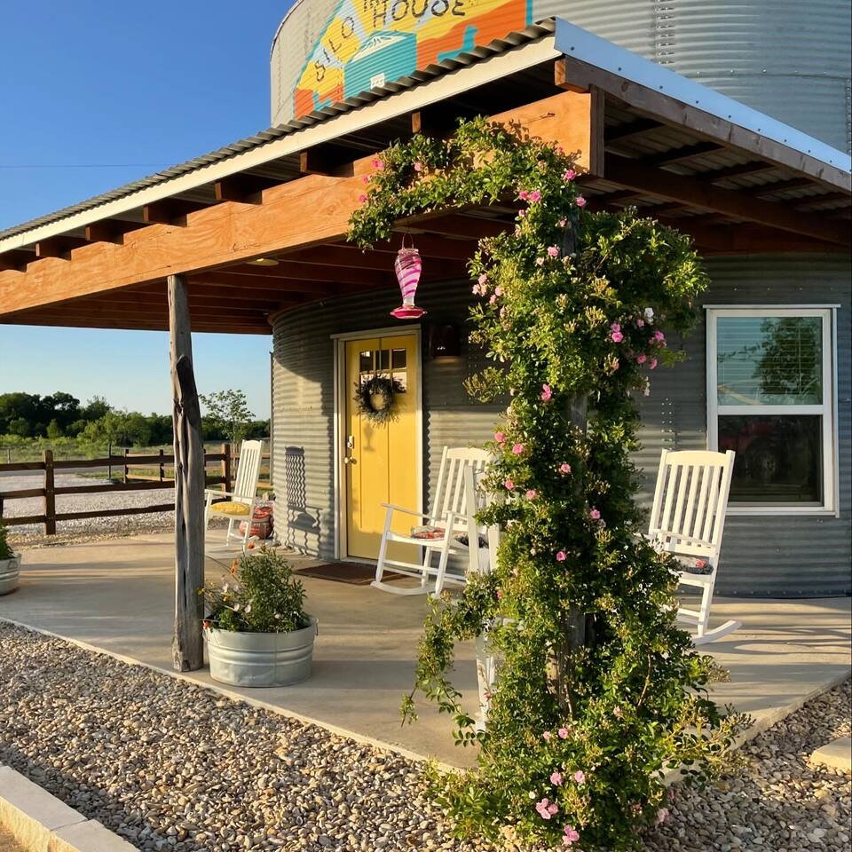 ✨ The Silo House at Laughing Llama Farm Stay in a one-of-a-kind renovated grain silo, featured on HGTV & Magnolia Network! Nestled on 10 peaceful acres, The Silo House blends modern comfort with farm charm — complete with llamas, sheep, and Texas sunsets you’ll never forget. Just 25 minutes from Waco, Temple & Belton, it’s the perfect mix of secluded and convenient. 🌟 Why You’ll Love It As seen on HGTV, Magnolia Network, and Pioneer Woman Magazine Named a Top Texas Farm Stay & Most Wishlisted by Airbnb Meet our llamas (we’ll provide feed!) + watch sheep & goats graze Private outdoor shower under the stars Cozy nights by the chiminea fire pit Secluded country feel, but minutes from everything 🛏 The Space Upstairs Loft: Queen bed in a cozy, curved space Downstairs: Queen sofa sleeper + full bathroom Kitchen: Full stove, oven, fridge, microwave, coffee maker, and all the essentials Outdoor Living: Rocking chairs, chiminea, grill, and views of llamas at sunset 672 sq. ft. of artistic, eclectic charm — designed for comfort and unforgettable memories. 💝 Add-On Packages (optional) Make your stay extra special with curated experiences: Romance: Flowers + Mimosas + Sugar Cookies Family Fun: S’mores + Farm Experience + Llama Feed Girls’ Trip: Charcuterie + Mimosas + Llama Meet & Greet 🌾 Guest Access Private entrance with plenty of parking Stocked pond (catch & release) — bring your rods, or borrow ours Access to farm life — llamas, sheep, and goats (all on their routine for safety) 📝 Good to Know One-night stays not available on weekends No monthly rates This is a working farm — you may hear/see animals nearby Security cameras face driveway entrances only ✨ More than a stay — it’s a story you’ll tell forever.